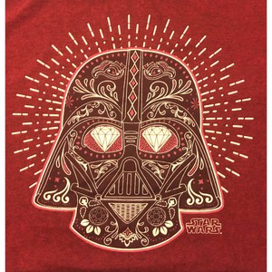 This cool Darth Vader tee shirt features an artistic and ornate print of Vaders iconic helmet giving it a Day of the Dead twist. Star Wars shirt Darth Vader Day of the Dead Sugar Skull Red Tshirt M. 61-ounce 100 cotton Double-needle neck sleeves and hem.